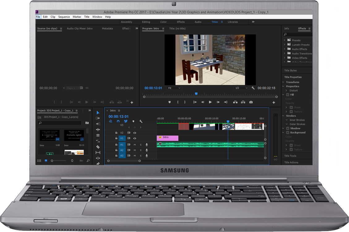 Merged animated modelled objects with content into Adobe Premier Pro
